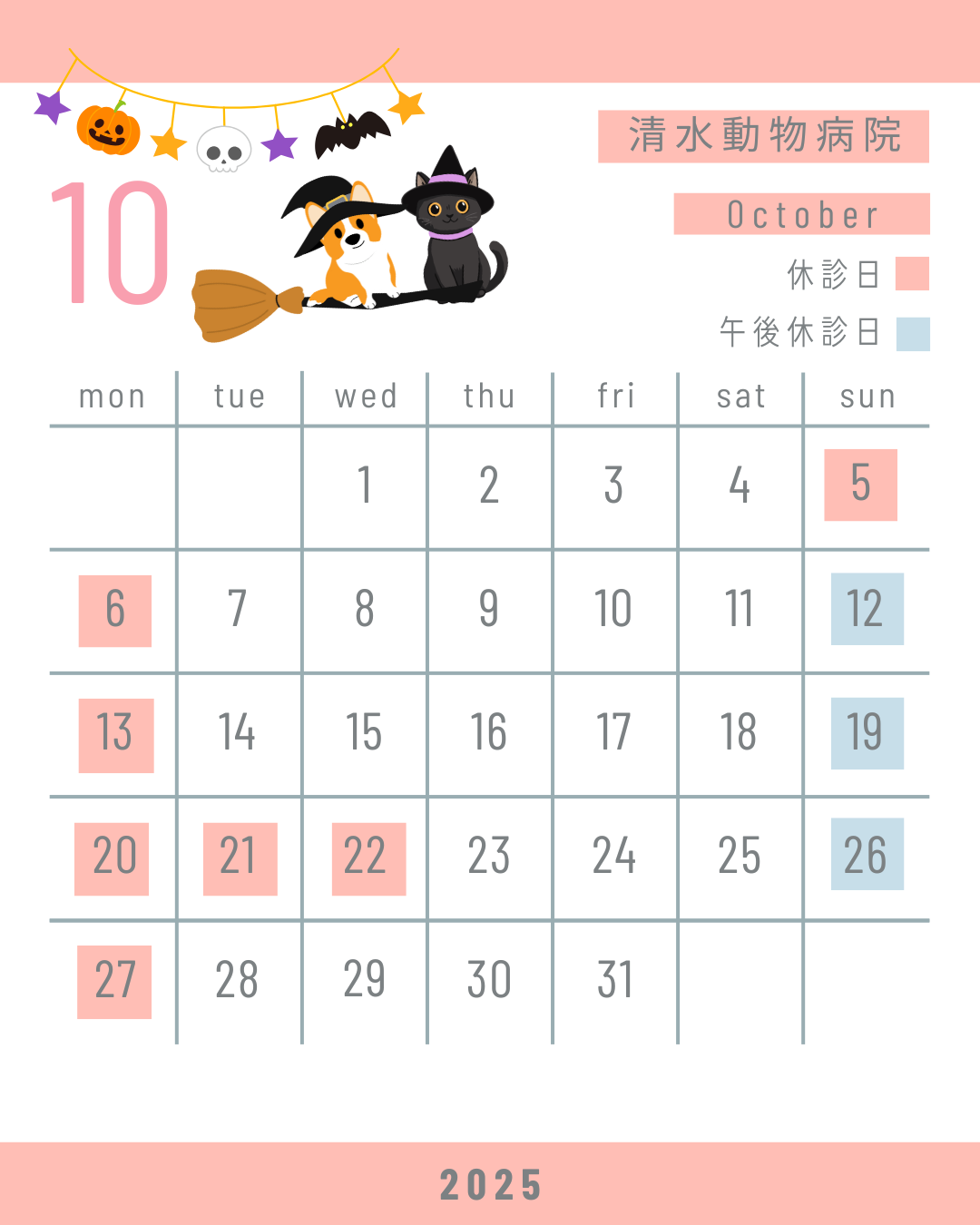 2025年10月12日(日)、19日(日)、26日(日)午後休診となります