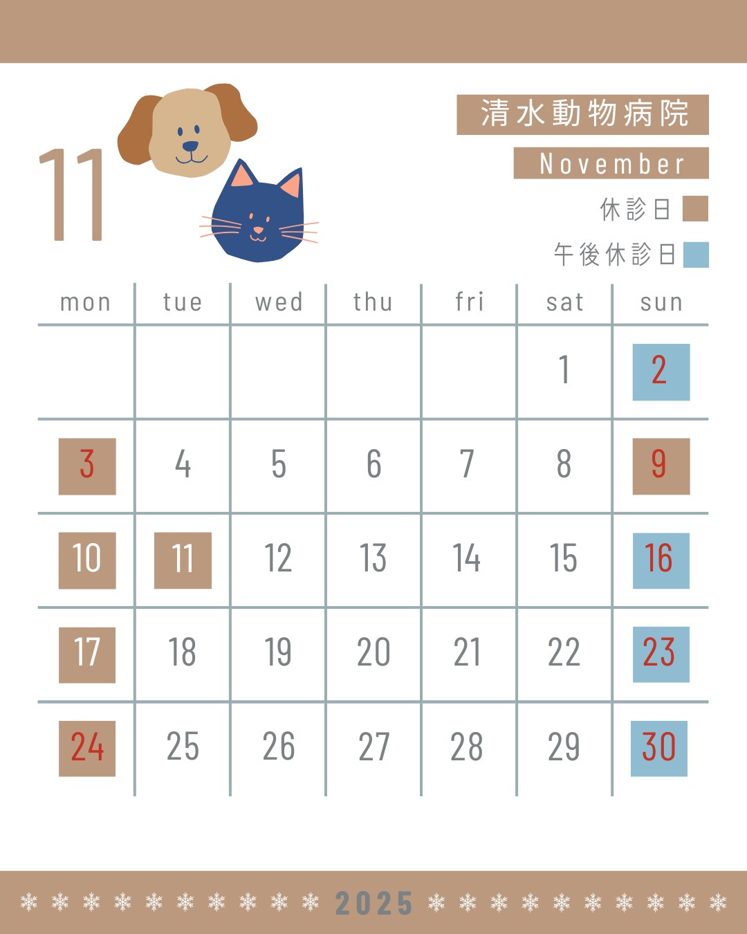 2025年10月12日(日)、19日(日)、26日(日)午後休診となります