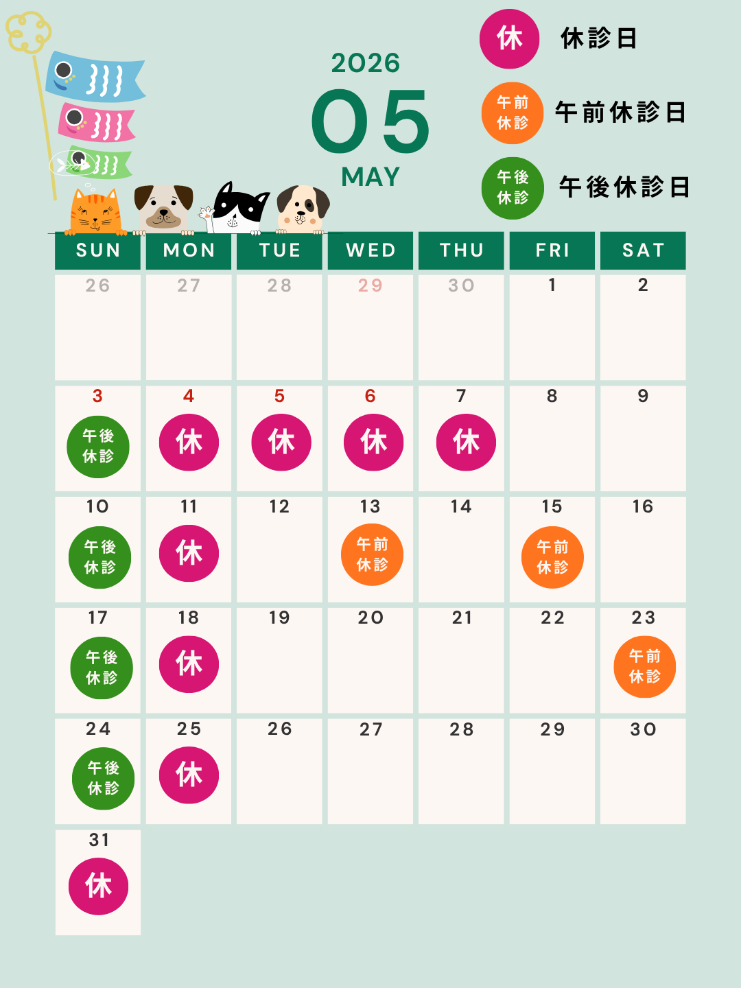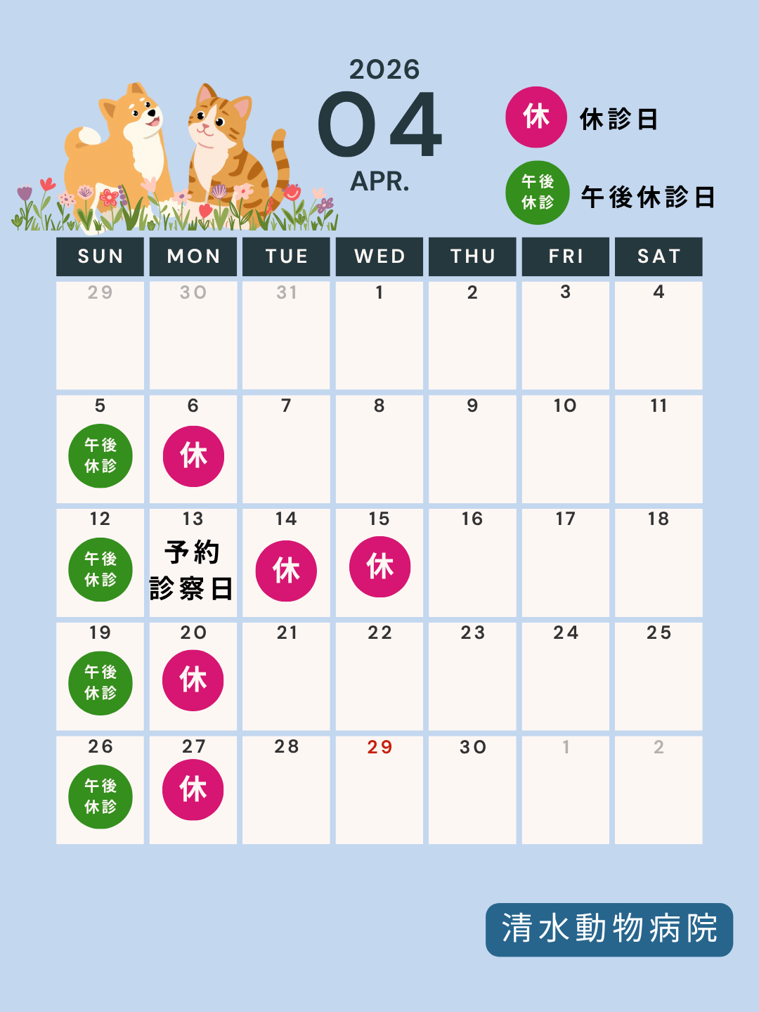 - 4月休診日のお知らせ