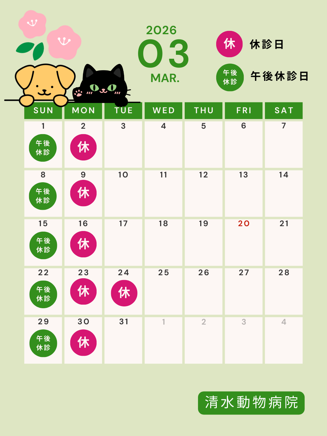 2026年1月1日(木)、2日(金)、3日(土)休診となります