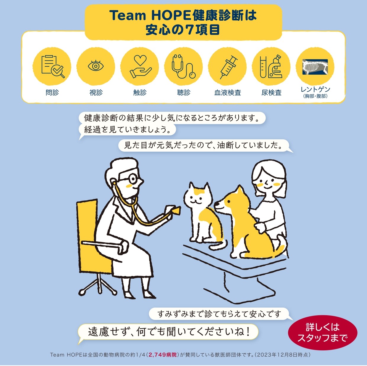 「Team HOPE」に加入し、家族の一員であるワンちゃん・ネコちゃんが健康で楽しく暮らせる社会を目指しています。