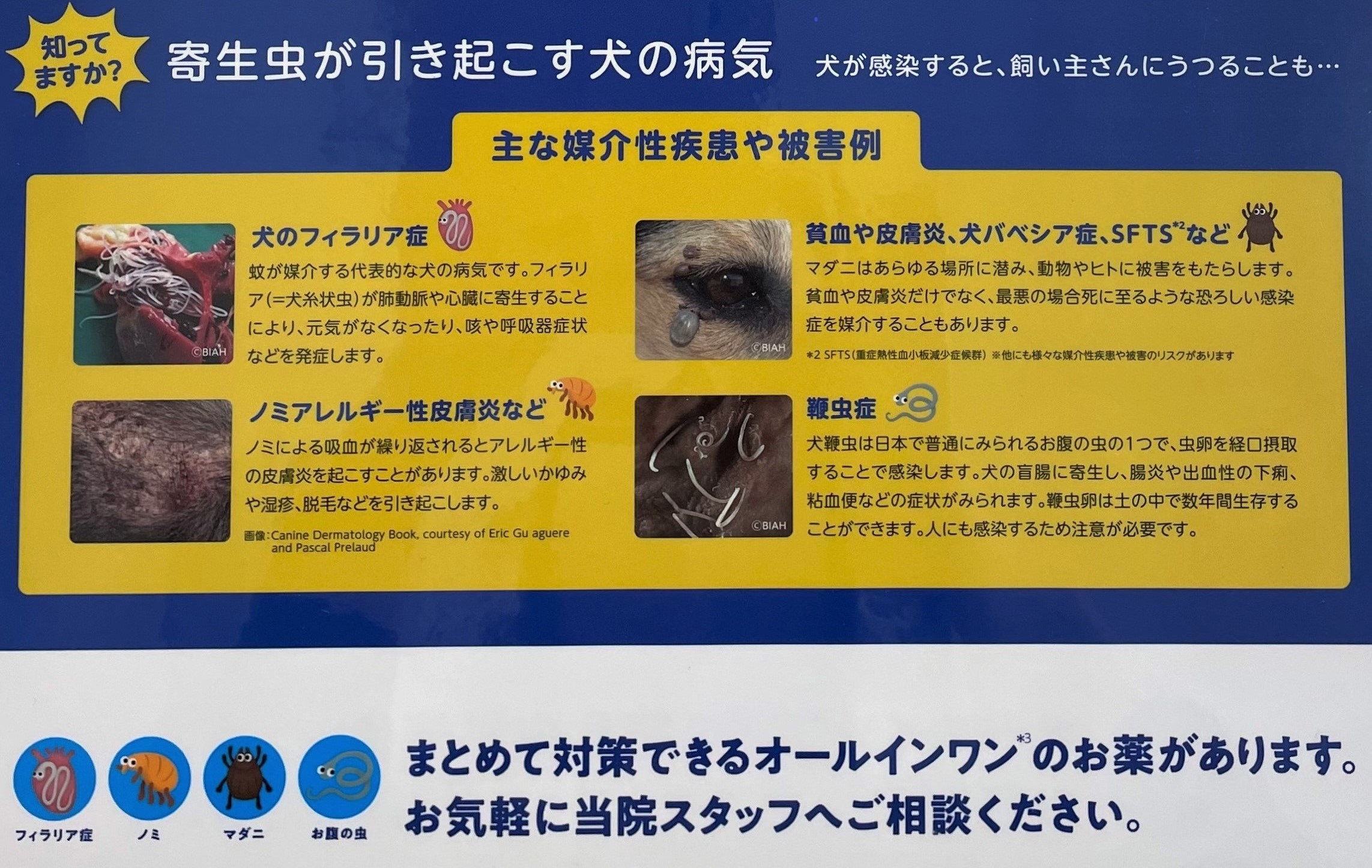 当院では、フィラリア症同様、一年を通しての駆虫をお勧めしてます。